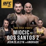The main event between Miocic (16-2 lifetime, 10-2 UFC) and dos Santos (18-4 lifetime, 12-3 UFC) is a rematch of their 2014 bout, where dos Santos prevailed in a unanimous, but close decision that saw both fighters earn performance bonuses. Since then, Miocic has won four straight fights and the Heavyweight belt, while dos Santos is 1-1 after taking a year off from active competition.